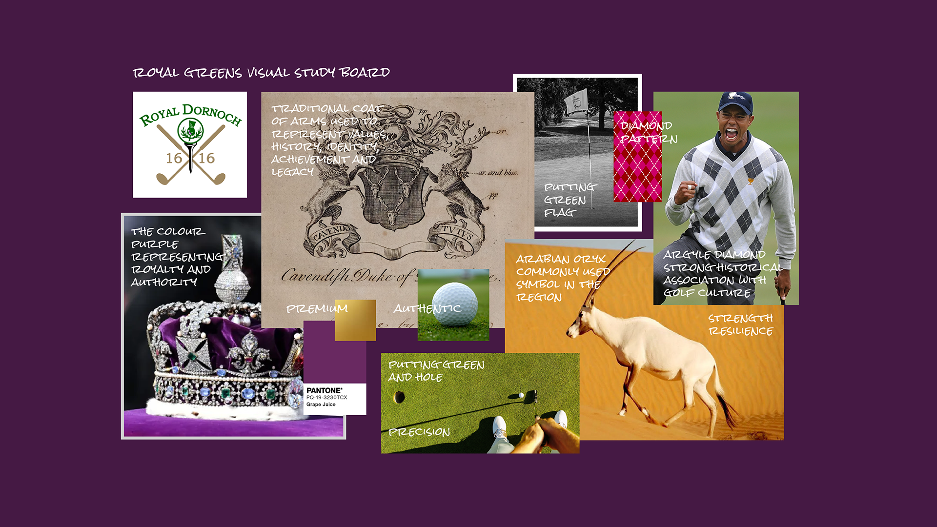 Inspired by the world’s most prestigious courses, Royal Greens carries a name that reflects a deep-rooted heritage and the classic distinction found across the UK and Commonwealth. The logo's crest contains a pair of crossed golf clubs and ball, flanked by two Arabian oryxes - a majestic species native to Saudi and a classic regional symbol. A royal crown sits above the crest, completing the design and underlining its regal prestige.