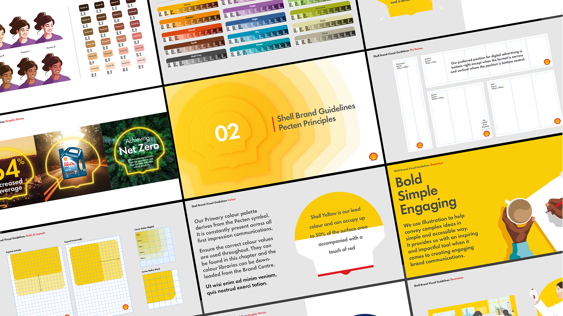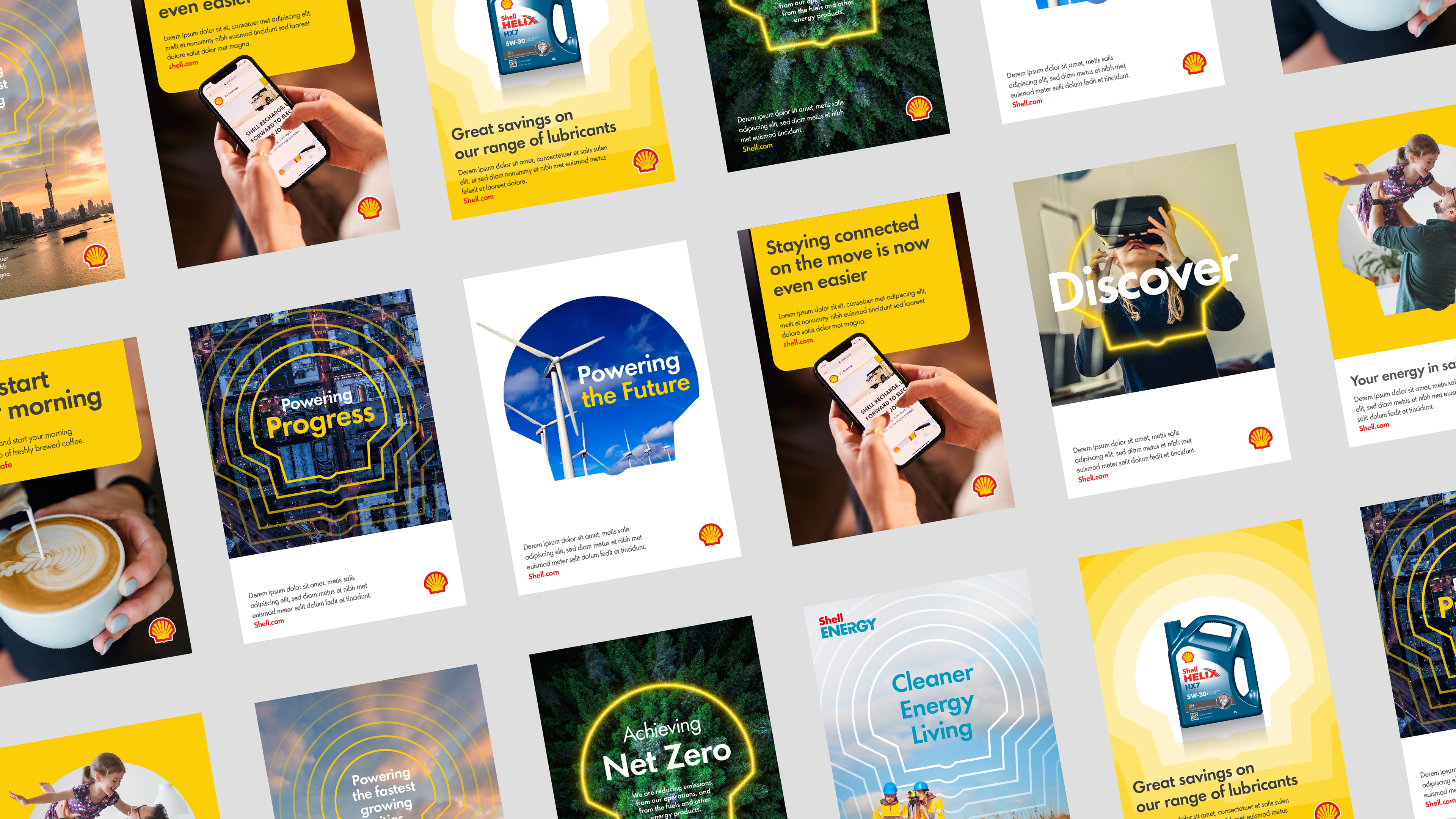 Shell's new tone of voice is both bold and contemporary, drawing inspiration from its rich heritage and the universally recognized "pecten" symbol. This refreshed approach is simple, direct, and effectively reinforces Shell's brand positioning. It also introduces a more human and authentic aesthetic, offering significant flexibility across all communication platforms.