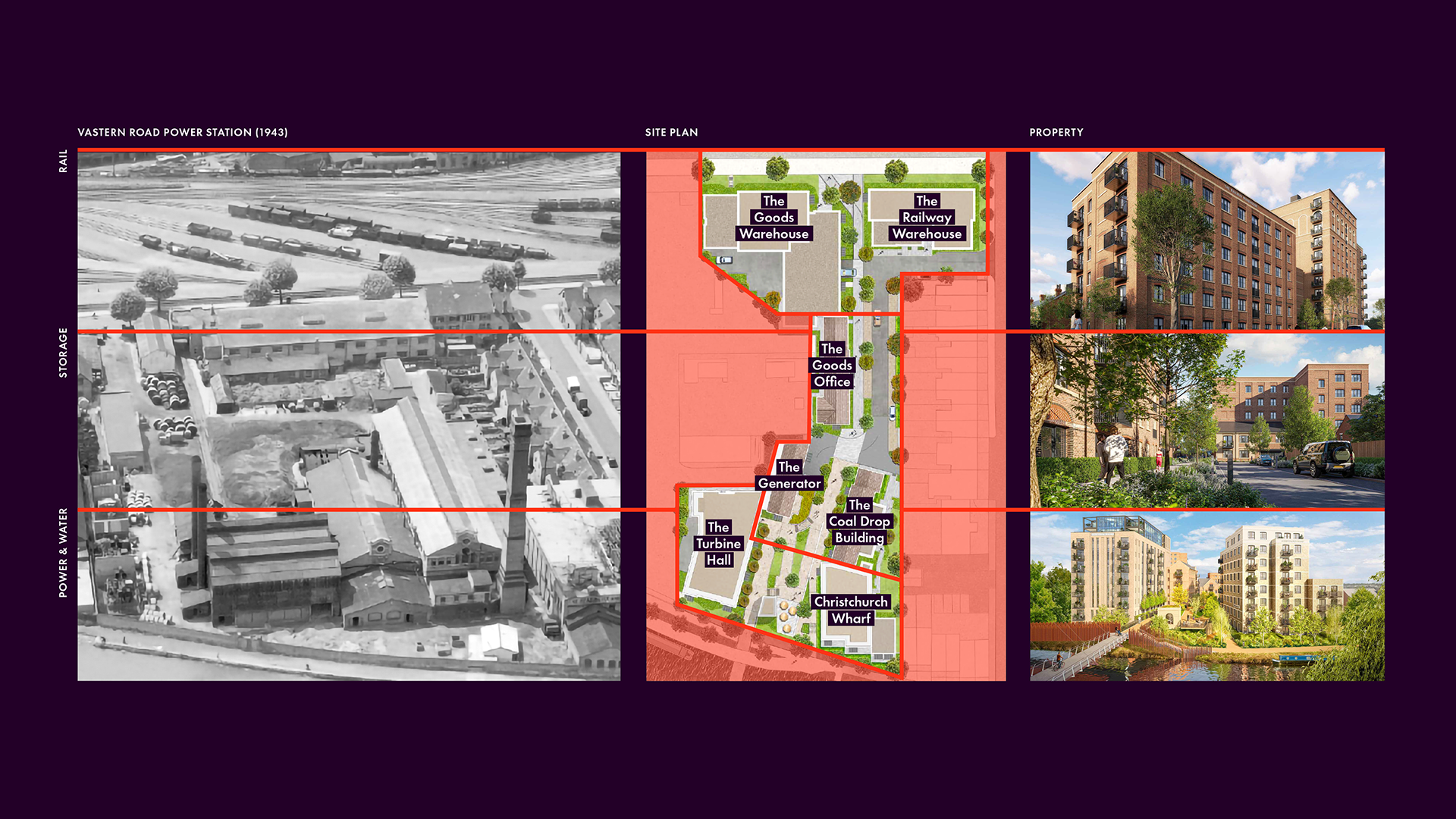 The Old Power Station is a landmark waterfront development built on the site of the old Vastern Road power station in Reading along the River Thames. The Berkeley Homes development draws on the area’s rich industrial heritage and offers a perfect balance of urban convenience and riverside tranquility. For most of the 20th century the local coal-fired power station generated electricity for Reading and the surrounding area. It was strategically located between the river and railway where water from the river cooled the turbine halls and coal, delivered by train, fuelled the furnaces.